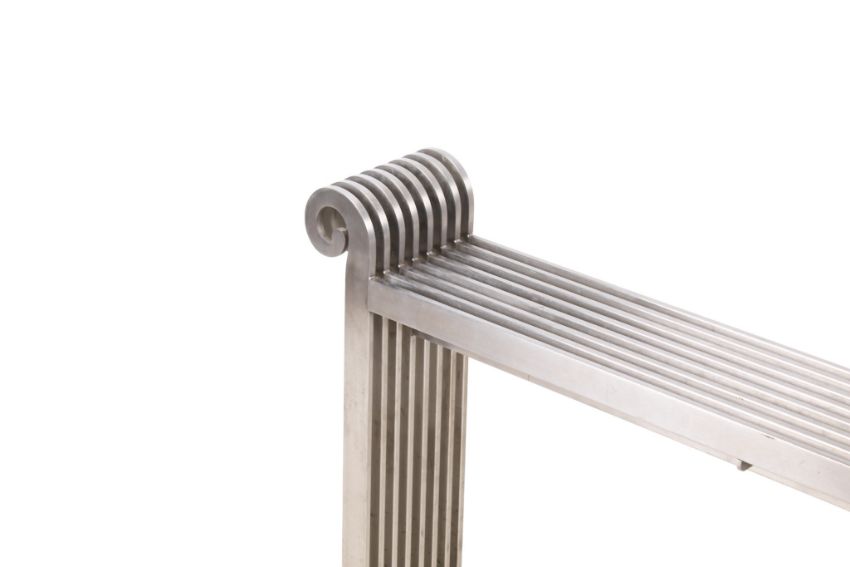 An Aeon Grandeur contemporary stainless steel radiator bench. H66cm x W116cm x D18cm
