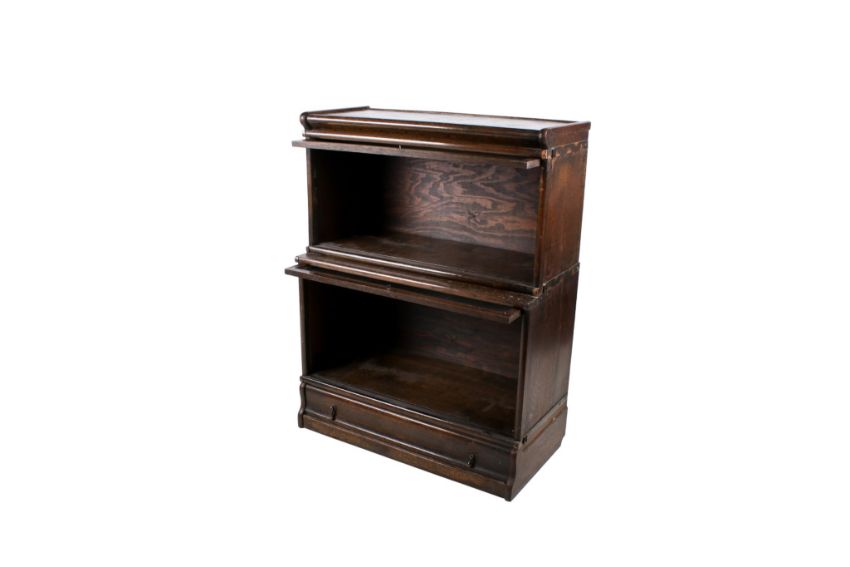 A 'Wernicke' style two-section oak waterfall bookcase. With drawers beneath, H112cm x W86cm x D45cm