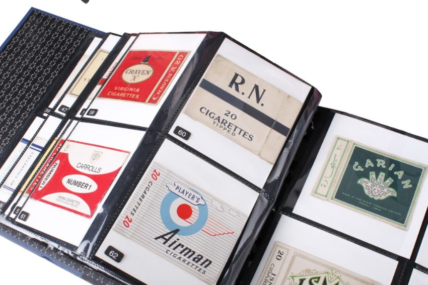 Four ring binders containing vintage cigarette packets. Including candy sticks, including Player's, Dunhill, Moorgate, etc.