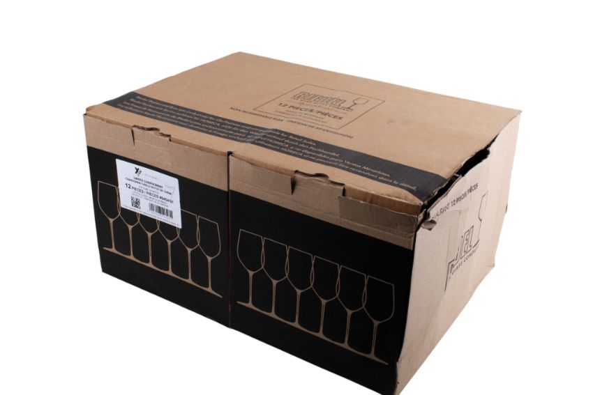 A box of twelve Riedel Restaurant crystal wine glasses. 'Oaked Chardonnay 'Poppy' 670 CCM / 23-5/8 OZ #0454/97, boxed as new