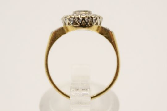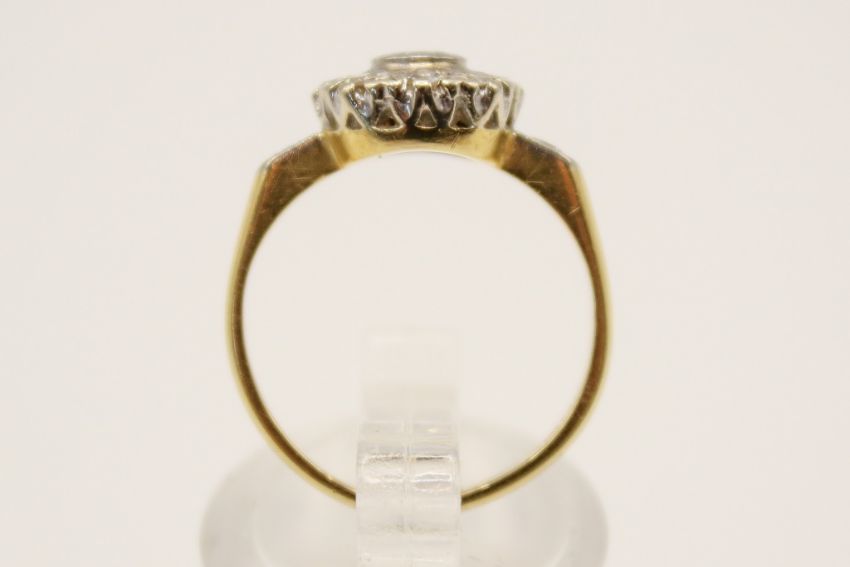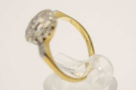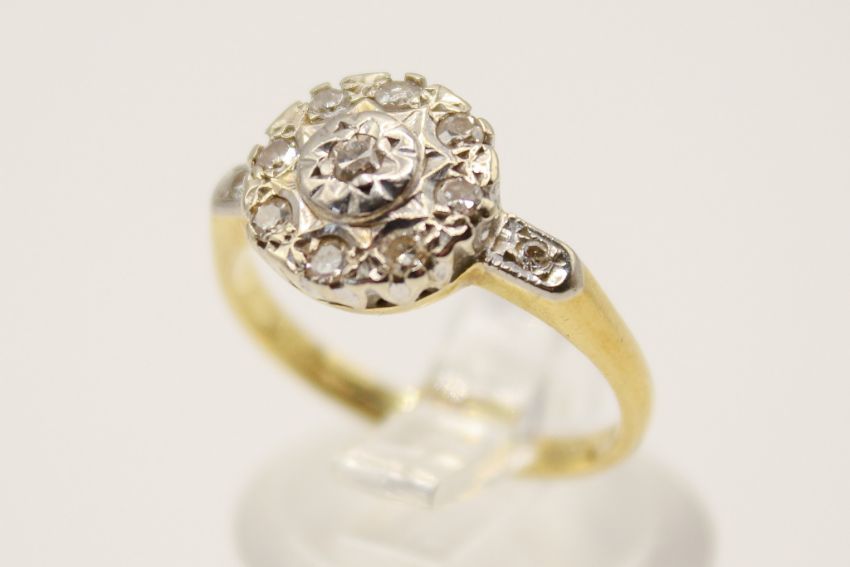 An 18ct gold and diamond cluster ring. With nine small illusion set diamonds, rubbed hallmarks, size L1/2, gross weight 3.6g.