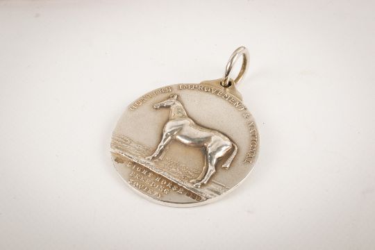 Four 1930s boxed silver medallions and accompanying framed photograph of a racehorse. The medallions awarded by The Hunter's Improvement & National Light Horse Breeding Society for the years 1931-1934 for the horse 'Park Lane'. All hallmarked, in fitted boxes, gross weight including loops 174.7g, together with a framed photograph of the racehorse from 1935.
