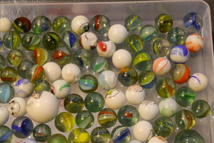 A collection of 20th century glass marbles. Various colours and sizes, in a tin. *** This lot is being sold on behalf of The Children's Hospice South West ***