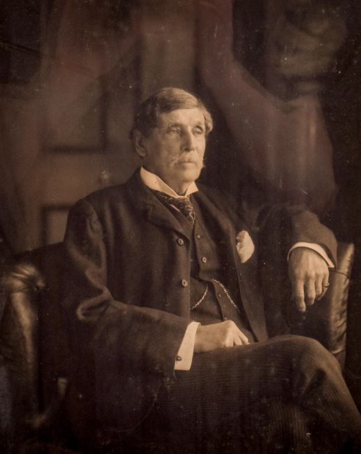 A circa 1900 black and white albumen portrait photograph of a gentleman by Elliott T Fay. Image size 28cm x 23cm, framed and glazed 62.5cm x 48.5cm.