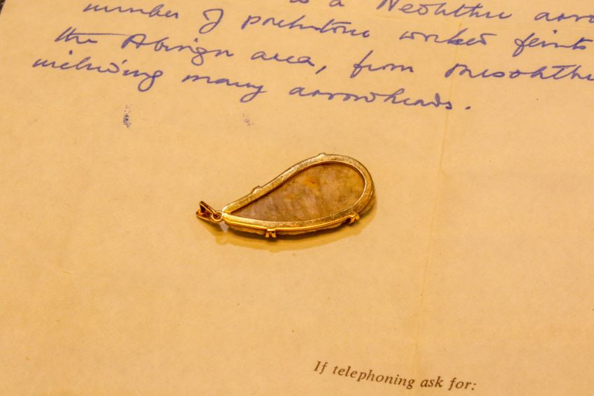 See photograph of paperwork regarding arrowhead.
