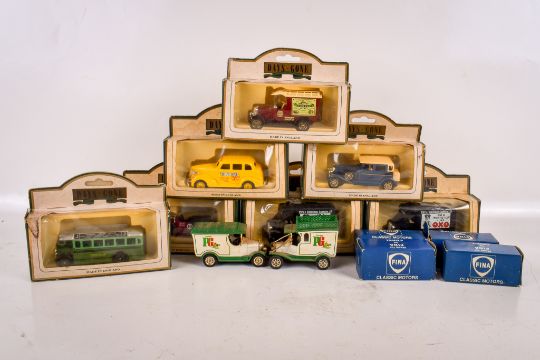 A collection of diecast model cars. Including a Lledo 'Days Gone' No.50001 1926 Bull Nose Morris Van, Fina by Corgi Mini, etc. The majority in the original boxes.