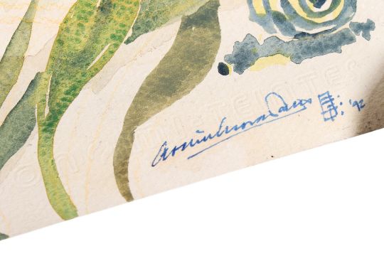 A 20th century watercolour on paper, 'Underwater Scene with Fish'. Signed (lower right), indistinct signature, dated '92', 54cm x 74cm.