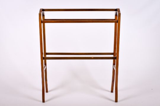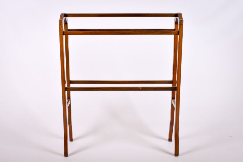 An Edwardian mahogany bathroom towel rail. H94cm x W76cm x D20cm