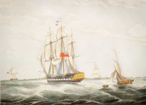 Two maritime prints. Consisting of 'H. C. S. Macqueen', 62cm x 51cm, framed and glazed, 92cm x 83cm and Mark Myers (20th century), 'The Mary Rose', signed and dated '1982' lower right, label verso, 52cm x 43cm, framed and glazed, 70cm x 61cm.