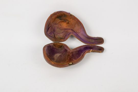 A novelty meerschaum smoker's pipe. Carved as an eagle's claw, with an amber mouthpiece, in the original fitted leather case, L15cm.