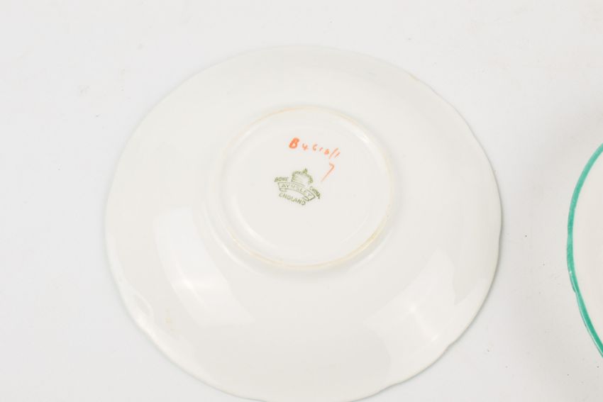 Appears in an excellent condition for its age, no chips, cracks or restoration, one of the saucers has a small area under the rim where the glaze hasn't taken. Light surface wear and staining to the spout conducive with use.