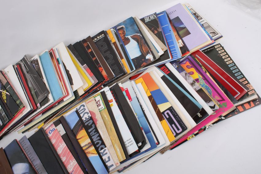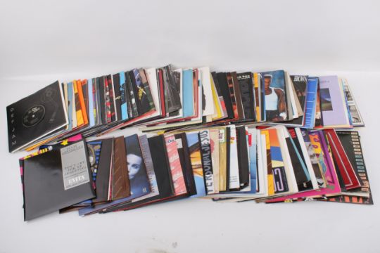 Two boxes of assorted seven inch vinyl single records mostly 1980s.