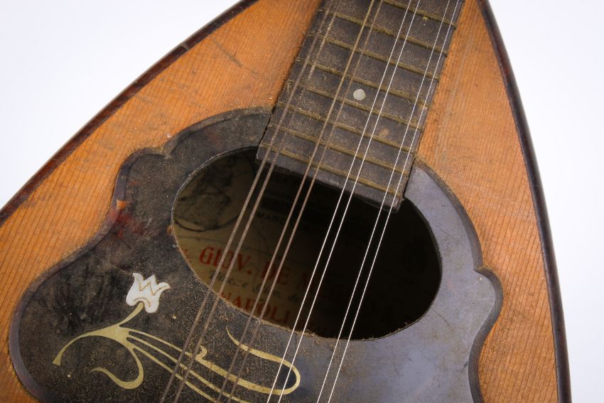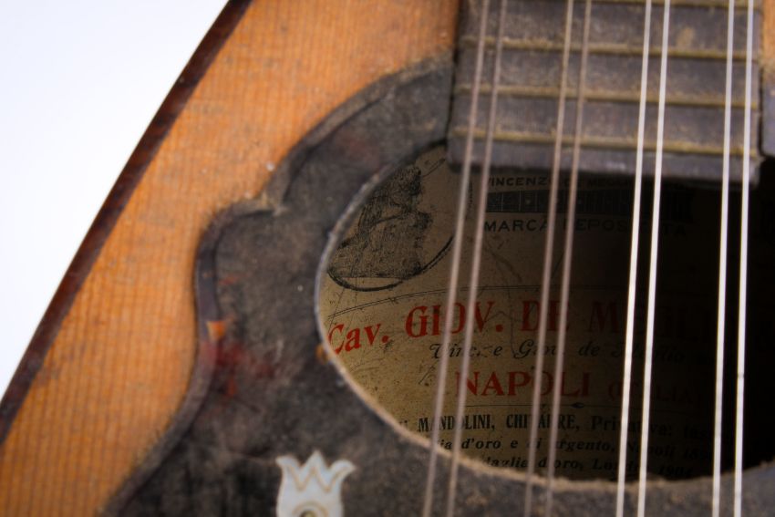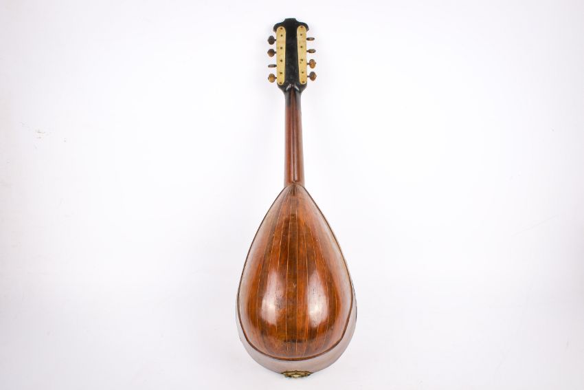 An early 20th century Neapolitan bowl back mandolin labelled Cav. Giovanni de Meglio & Fglio. Dated '1907'. model 1, no. 14939. Total length 60cm