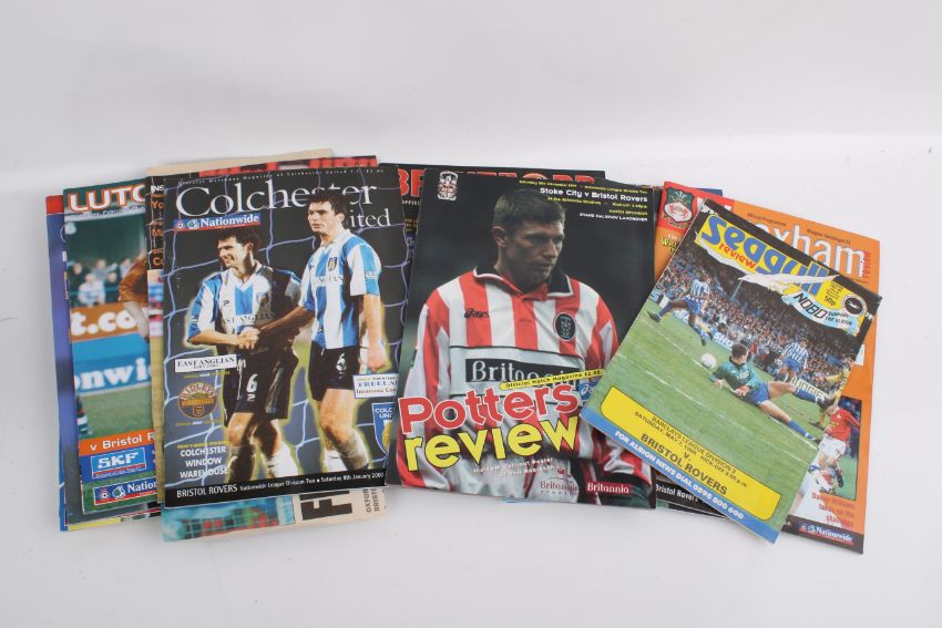 A collection of Bristol Rovers football away programmes. Circa 1970-2000s, including 1972 vs Aston Villa, 1972 vs Bournemouth, 1974 vs Sunderland, 1979 vs Chelsea, 1980 vs Cardiff, 1987 vs Fulham, etc.