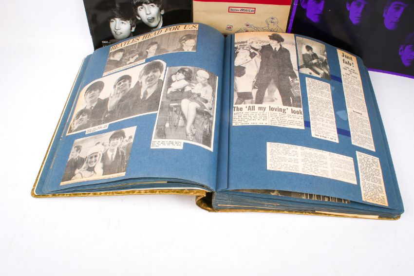 An assortment of The Beatles memorabilia. Comprising a 1960s A+BC Chewing Gum Cards album and contents, a Beatles Ltd 1964 booklet, a Daily Mirror 'The Beatles Hello...Goodbye' anniversary magazine and a scrapbook.