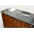 A contemporary Regency style marble top sideboard with checkerboard marquetry pattern doors. Having glass protector to the top, doors opening to reveal and open back to one side, raised on turned tapering supports with gilt detail. H85cm x W120cm x D55cm