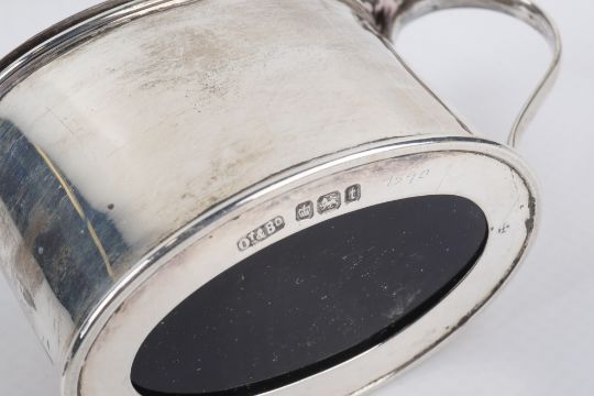 A group of silver flatware and table items. Including a set of four silver handled knives and forks, three salt spoons, pepper pot and mustard pot, this all gross weight 490g, together with a further pickle fork.