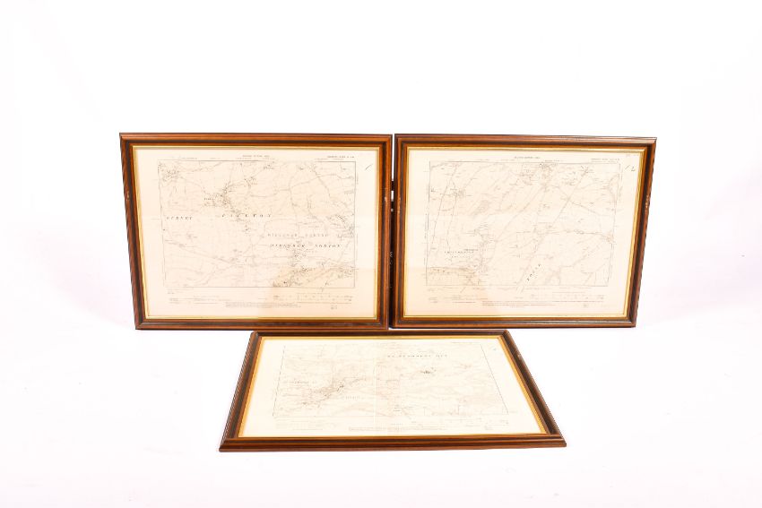 Three vintage surveyor's maps - local interest. Including Paulton, Midsomer Norton and Chilcompton, framed and glazed, 63cm x 49cm