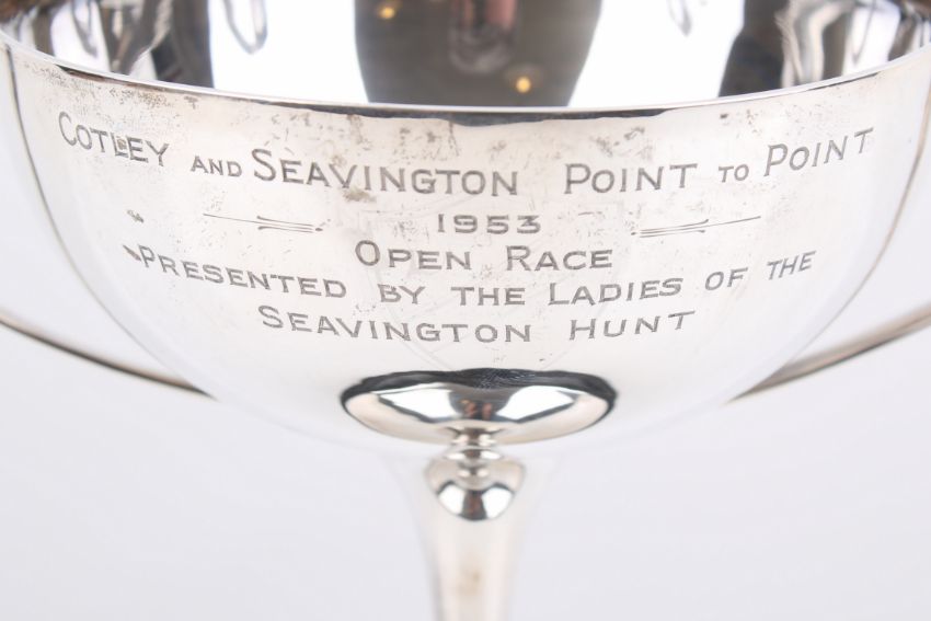 A Stirling silver hallmarked sporting trophy - Cotley and Seavington Point to Point 1953. Sheffield 1922 Richard Richardson. Total H23cm 214g