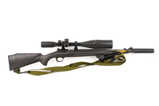 A Browning CAL .17 HMR T-Bolt Composite Sporter left handed rifle. S/n 21390ZT253, with Spike 6-24x50AOL scope, bi-pod, suppressor and shoulder strap, no magazine. SECTION-1 LICENSE IS REQUIRED TO PURCHASE THIS LOT. (No postage)