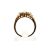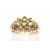 A hallmarked 9ct gold dress ring. Set with coloured gemstones assessed as peridot and topaz with a border of small round brilliant cut diamonds. Size N, 3.8 grams gross weight.