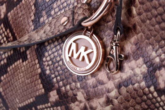 A Michael Kors 'snakeskin' pattern handbag. With rose gold and pale pink fittings, with shoulder strap, width circa 32cm, with dust bag.
