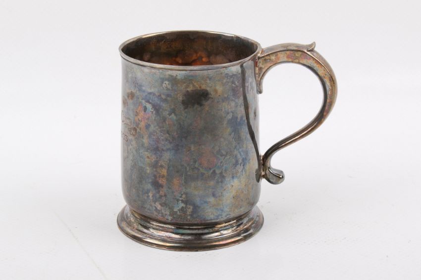 A Stirling silver hallmarked Christening mug, London 1734. Engraved '14 March 1903'. Weight 182g, H90mm