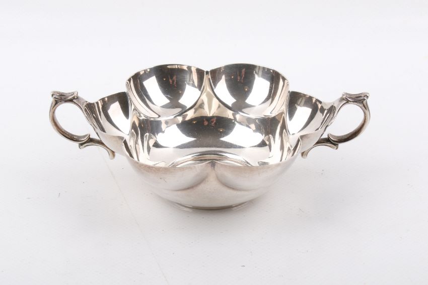 A Stirling silver hallmarked twin-handled scalloped edge dish. By Charles Edwards, London, 1898. 241g