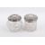 Two silver topped glass jars. The lids with repousse decoration of a Green Man face and birds amongst scrolling leaves, with central blank reserve, over cut glass containers. Largest H9cm.