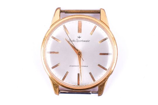 A Seiko Sportsmatic automatic wristwatch without strap. With gold markers to the cream face, case diameter 3.5cm, numbered 15035, without strap.