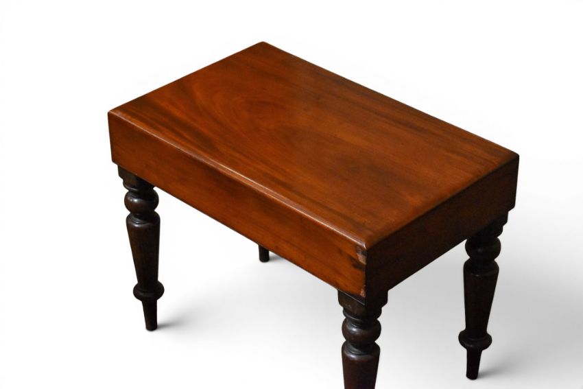 A vintage mahogany luggage rack and commode. Both on turned supports. Commode missing it's pan. Largest H39cm x W76cm x D42cm